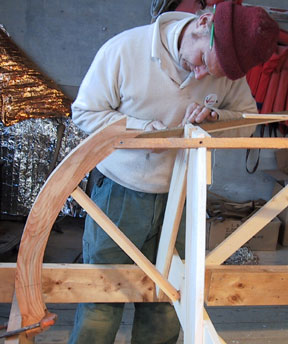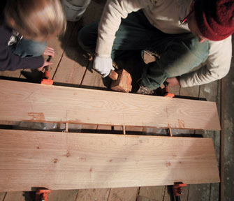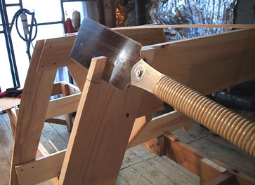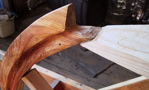 Cut the stem from hackmatack and the set it up on the strongback. Puzzled over how the stem and keelson are fit together.