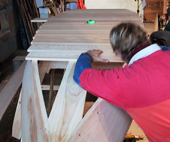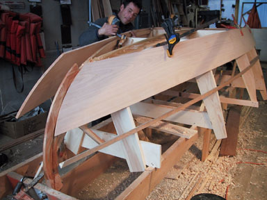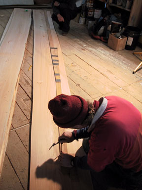 Fit garboards to boat and attached to stem and chinelog with screws.