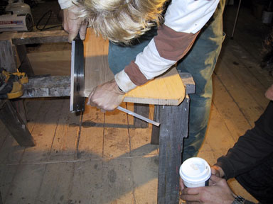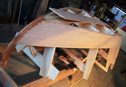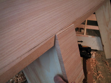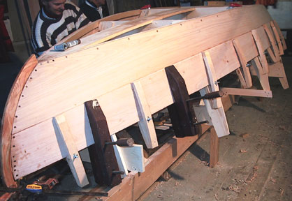 A bevel was cut on the edge of the garboard so it can receive the sheerstrake with a tight fit.