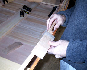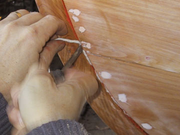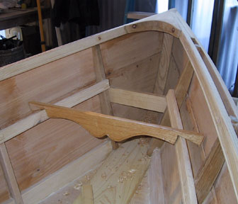 Attending to little details like the oval brass screws for the oarlock holders. I bought copper by mistake but was able to find the brass at Grovers, the local hardware store in Boothbay Harbor.