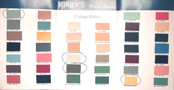 The paint order arrived from Kirby Paint Company in New Bedford, Mass. The colors that I decided to use are the circled ones.