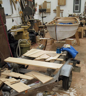The second skiff is moving along. The keelson and the chine logs are smaller than on the first skiff and I am wondering if it truly qualifies as a Mathis skiff if the scantlings are changed? The stem is also shaped slightly different where it meets the keelson, as is the size of the sheerstrake.